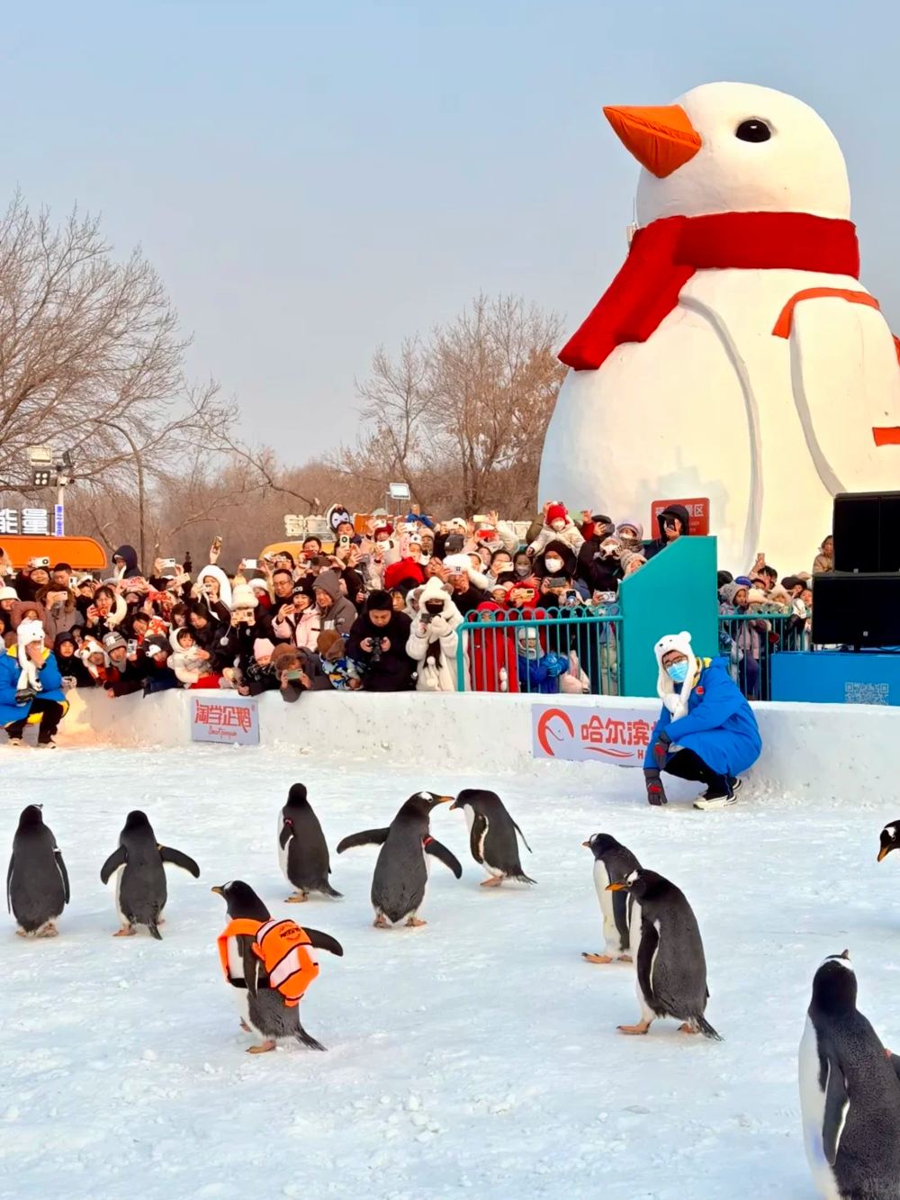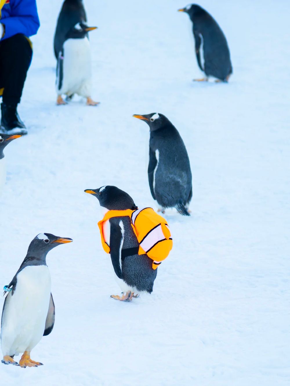 ▲ 你能看到 “淘学企鹅” 排着队摇摇摆摆走在冰面上,周围都是围观的游客~这是哈尔滨极地公园的特色巡游,能近距离跟帝企鹅、阿德利企鹅这些南极萌宠同框,逛园时还能搭配全息剧场、VR 深海体验,像真的跟着企鹅环游极地一样!
