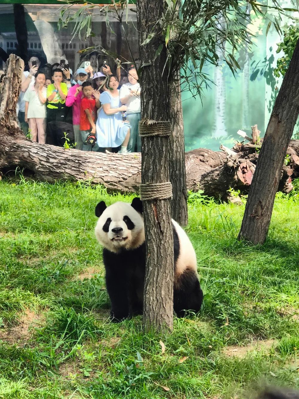 ▲ 这只躲在树后的大熊猫,是太阳岛的 “芝士” 或 “芝麻” 双胞胎~它们待的场地就在 88 种花卉铺成的花园里,连室内都模拟了熊猫老家的环境,来这儿能看到熊猫自然的萌态,随便拍都是治愈感满满的照片!