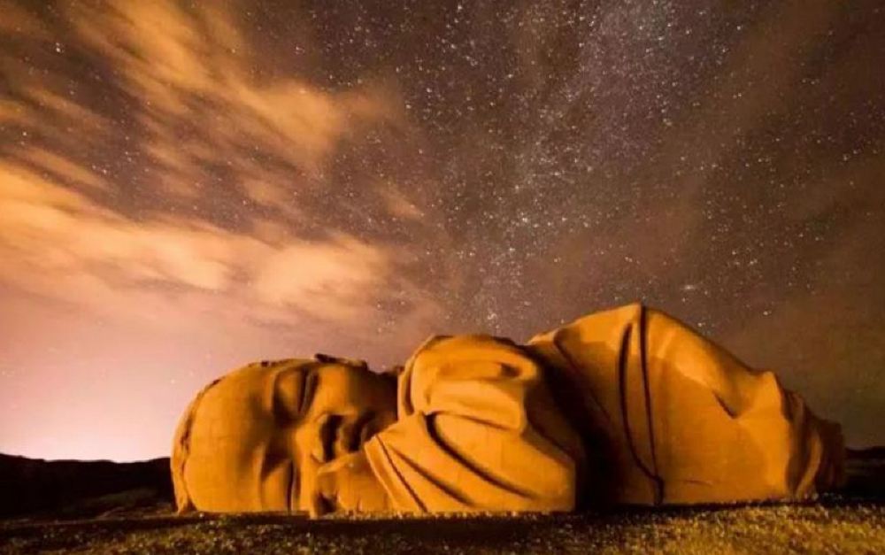 ▲ 这也是迄今国内外首座大的数字雕刻的石雕艺术。远远望去,它就像一个伏案沉睡的婴儿,安然恬静。这座婴儿雕塑采用了3D技术,利用三维扫描获取模型数据,再分块进行3D雕刻,之后主块雕砌安装成型,以红砂岩为主要材料制成,婴儿长15米,高四点三米,宽九米,是在2016年的时候,由清华大学美术学院雕塑系教授董书兵先生自筹经费构想创作的。
