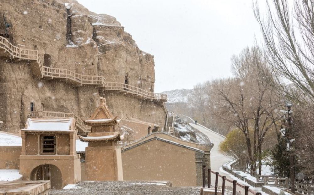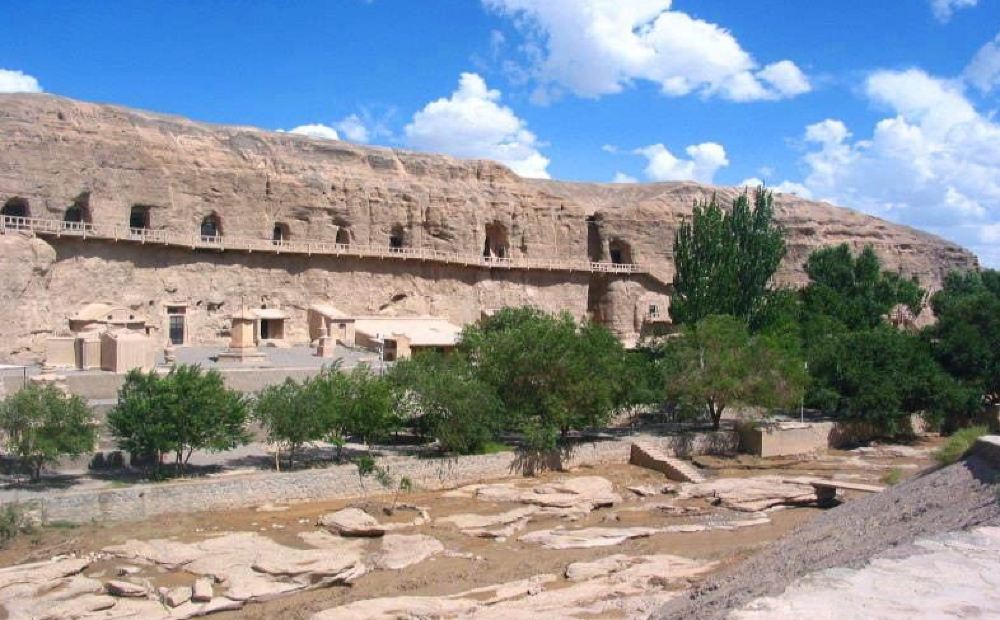 ▲ 榆林窟,又名万佛峡、榆林寺 、上洞子 ,洞窟开凿在榆林河峡谷两岸直立的东西峭壁上,因河岸榆树成林而得名。榆林窟洞窟存在43窟,分布面积112850平方米,壁画总面积4200平方米。彩绘佛、道图10856铺,彩塑佛、道造像244身。洞窟当中唐3窟、五代8窟、宋13窟、西夏、元各4窟、清9窟。从洞窟形式、表现内容和艺术风格看与莫高窟相似度高,是莫高窟艺术系统的一个分支。