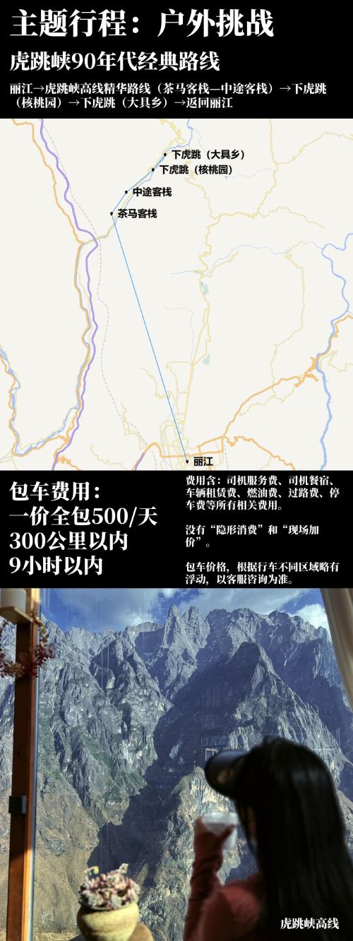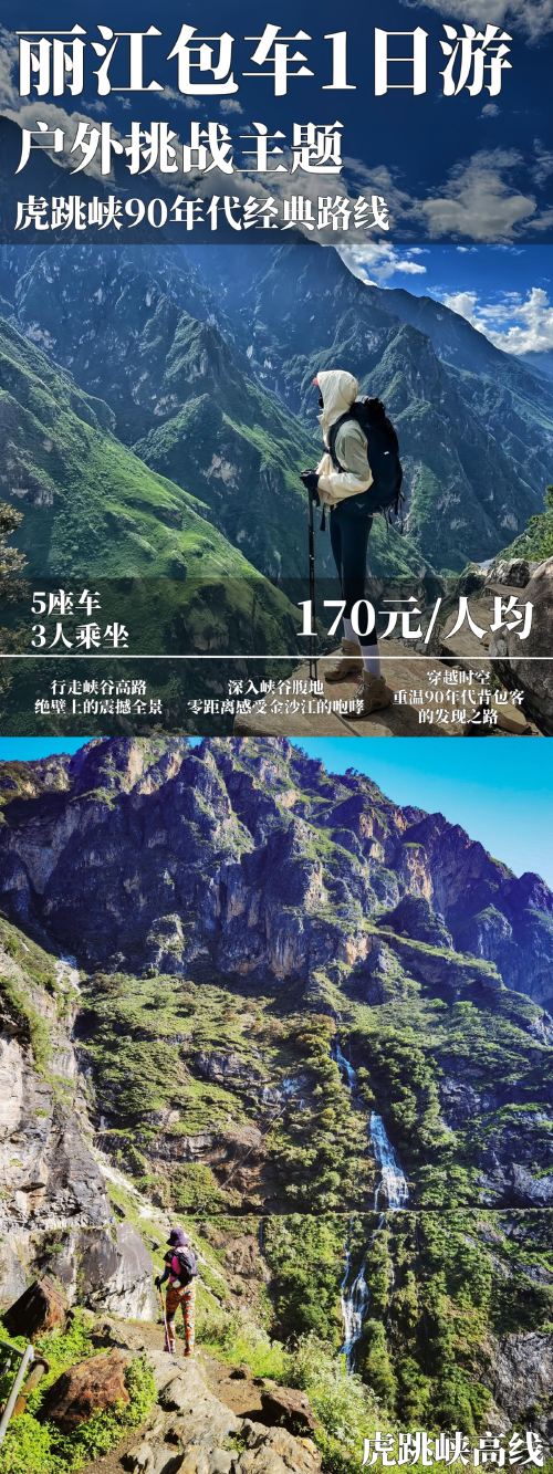 丽江包车1日游+户外挑战主题+虎跳峡90年代经典路线【行走峡谷高路,绝壁上的震撼全景】