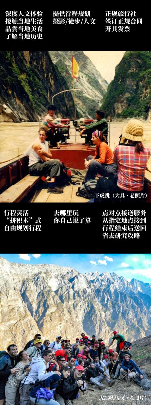 今天,我们要做的,就是一场向徒步黄金时代致敬的【复古徒步】。回到原始的方式,去感受虎跳峡真正的灵魂。90年代背包客的探险精神,与今日便捷的包车服务完美融合。无论你是追求冒险的户外爱好者,还是渴望用短时间解锁经典的新玩家,这条路线都将以“一日穿越时空”的方式,带你在虎跳峡的山水狂想中,找到属于自己的冒险方式。