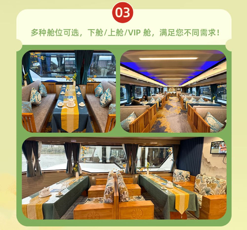 【温馨提示】船票只做为登船凭证,不是船票的实际价值。票面价格低于网络卖价(下舱、上舱、VIP舱为统一票面价)景区无上舱,VIP舱售卖,下单即默认该规则,不接受相关的售后和投诉,请知悉。
