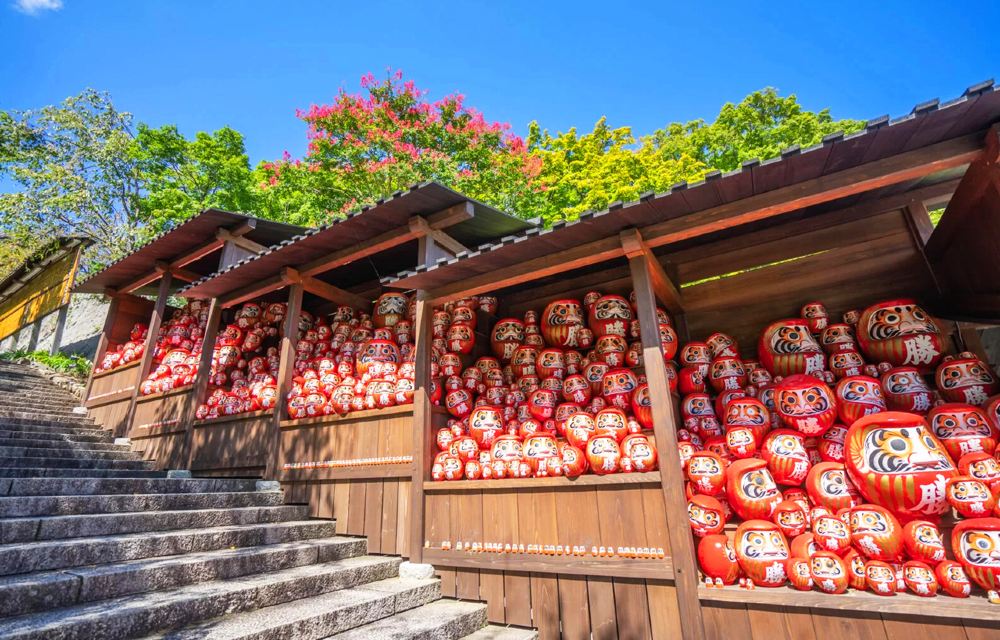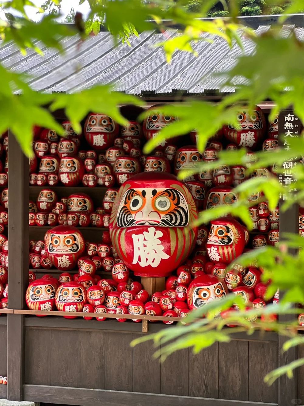 ▲ 【胜尾寺-达摩不倒翁】 寺内千尊达摩承载的香客祈愿,您可亲手填写心愿;亦可打卡寻宝,集齐寺内六色印章,最终兑换满载祝福的开运明信片。(1.每个人都可以在寺内的「授予所」(授与所)挑选和自己有缘的不倒翁。2.在胜尾寺入口可以拿一张空白明信片这是胜尾寺另一个有趣之处,胜尾寺全区有6个地方可以盖章。)