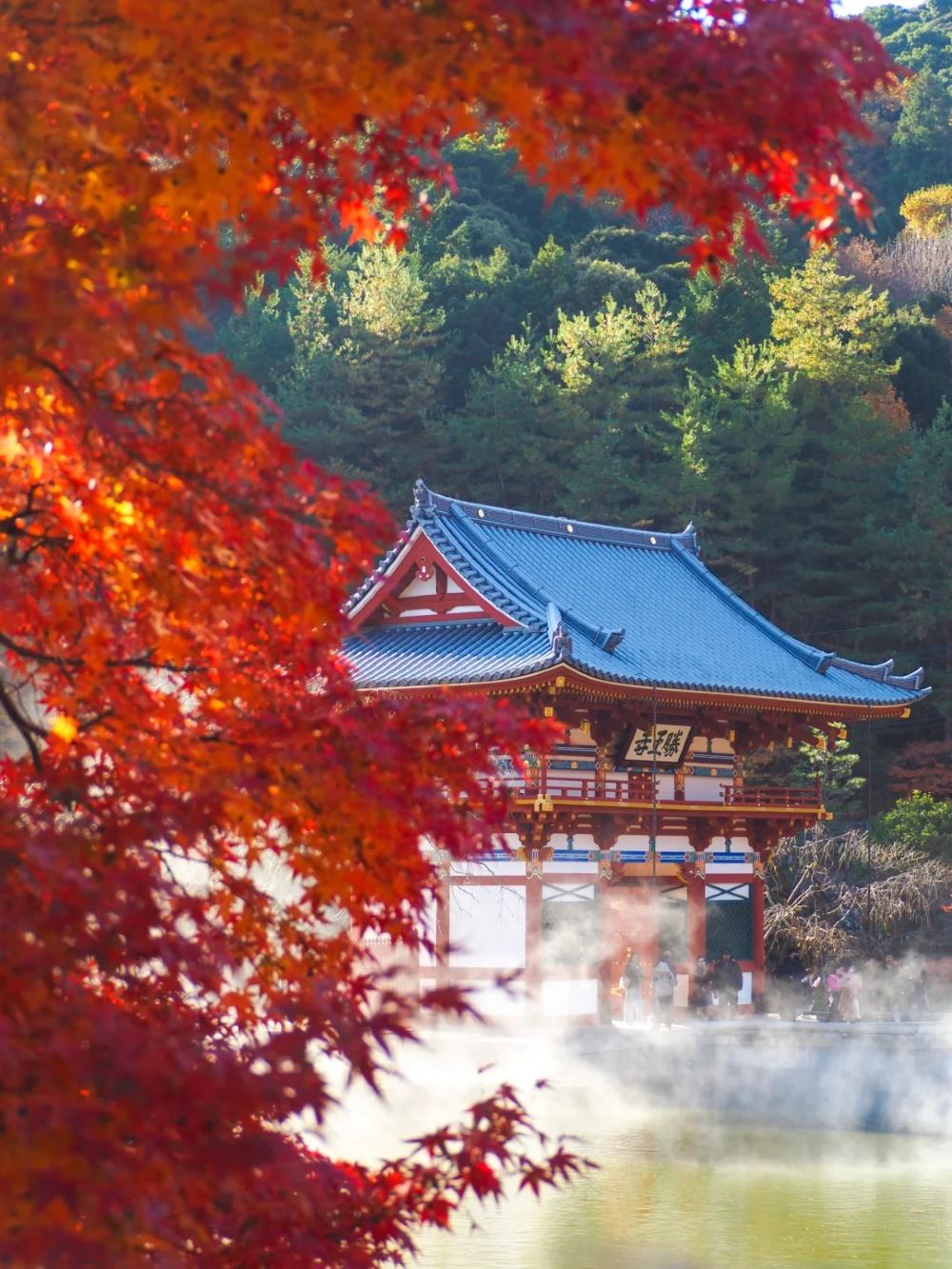 ▲ 【胜尾寺】祈求胜利和好运的灵验圣地,穿过净化之桥时氤氲圣雾洗净厄运。 胜尾寺的看点之一是朱红色雄伟的山门静静矗立着,门上还悬挂着旧名【胜王寺】的匾额。走进后的魄力令人震撼,越过庄严的山门之后是【净化之桥】。走在桥上时,湖中喷洒出的雾气,让香客能够沐浴于清净之中,摆脱厄运。