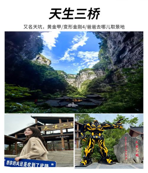 武隆天生三桥+龙水峡地缝+乌江画廊(涪陵段)一日游【[小团出行]2-8人精品纯玩小团,本地人向导带您玩,更轻松自在!】