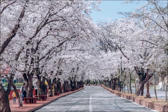 位于首尔近郊的伊甸园樱花,每年3月底-4月初开花,竖立在道路两旁的樱花路,像爆米花一样盛开绽放的樱花,只也有在樱花庆典时才可看到的美景,喜欢赏樱的你千万不能够错过的!