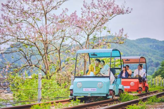 韩国赏樱一日游|南怡岛 × 铁道自行车 × 伊甸园樱花路【享受江村铁道自行车,既能体验骑行的乐趣,又能欣赏美丽的景色,非常适合放松和享受大自然的独特方式~】