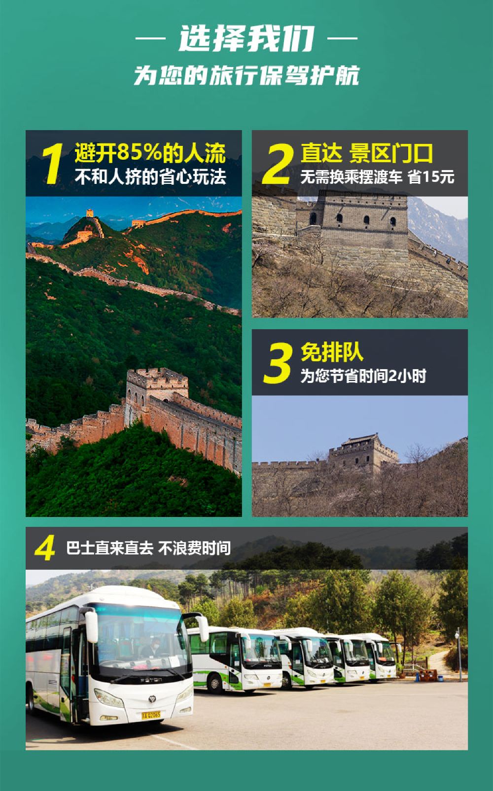 慕田峪长城一日游【多场次拼车出行大巴接送】【[品质保障]真正纯玩无购物、无自费,纯净水旅行!】