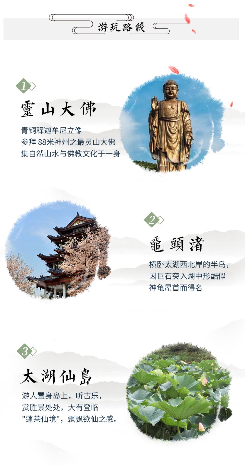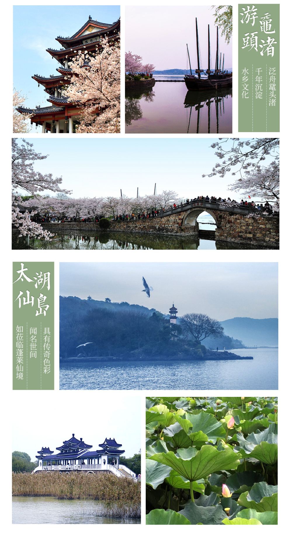 约14:00游览【太湖鼋头渚】(太湖鼋头渚往返景区观光车或游船40元人游客自理)鼋头渚是横卧太湖西北岸的一个半岛,因巨石突入湖中形状酷似神龟昂首而得名。登三山仙岛,观充山隐秀、鹿顶迎晖、鼋渚春涛、横云山庄、广福寺、太湖仙岛、江南兰苑,中日樱花友谊林等众多景观,各具风貌。
