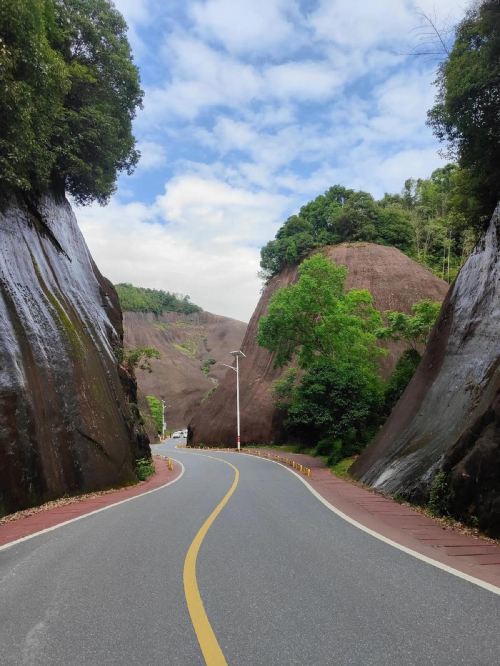 ▲ 山势陡峭险峻的丹霞地貌风光带,目前处于未完全开发的状态。我们仅仅随大巴,并下车走过一小段峡谷中被誉为“美丽的峡谷公路”,眼球就被公路穿越的峡谷两旁高山峭壁所吸引,其光溜溜、滑丝丝的丹霞地貌,让人惊叹不已。