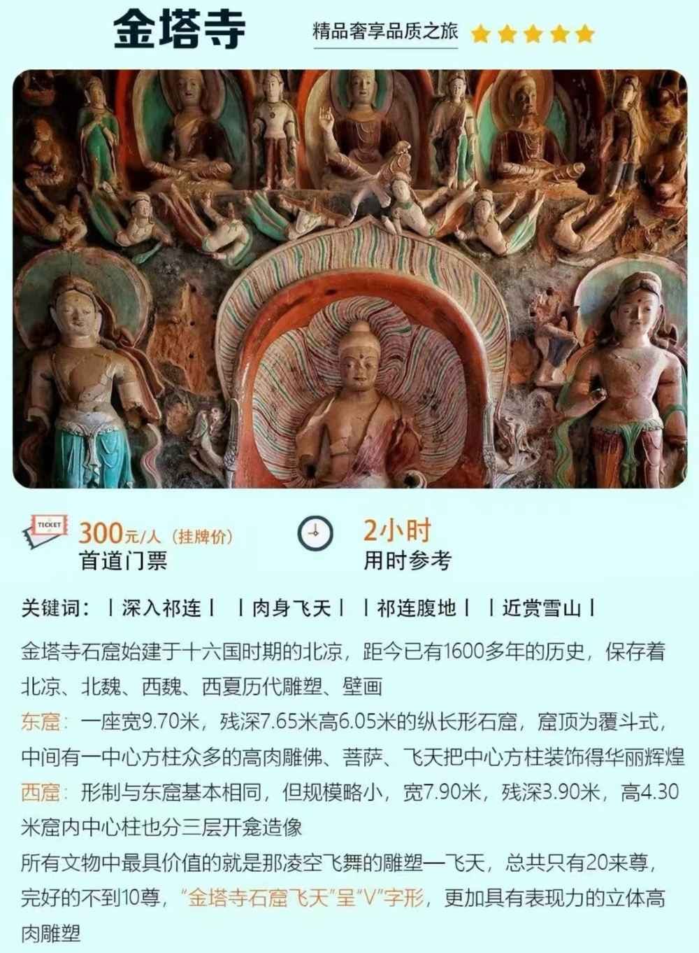 2、包含金塔寺特窟300元/人