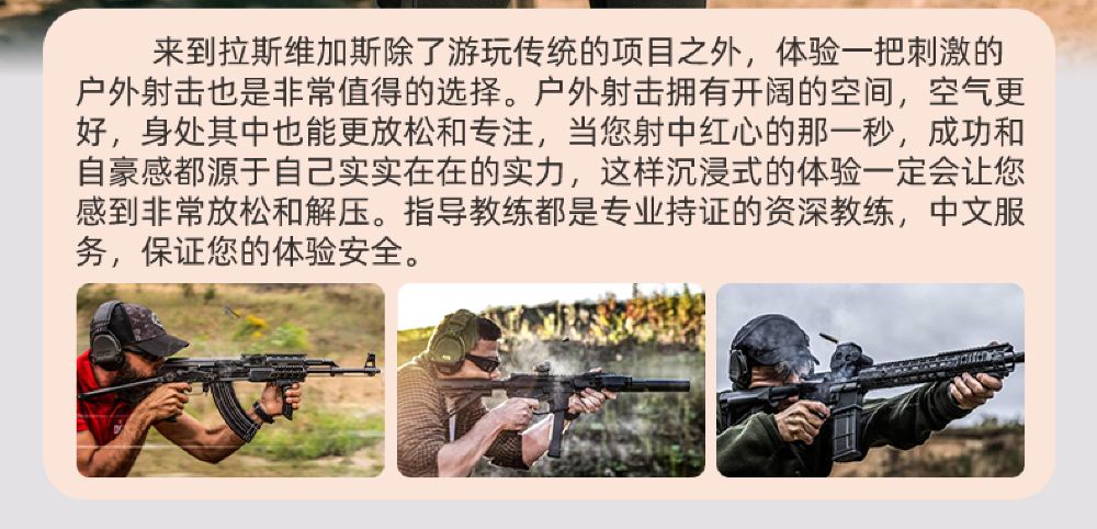 美国拉斯维加斯射击俱乐部一日游【户外射击| 2人起订接送 】【中英双语服务 酒店接送】