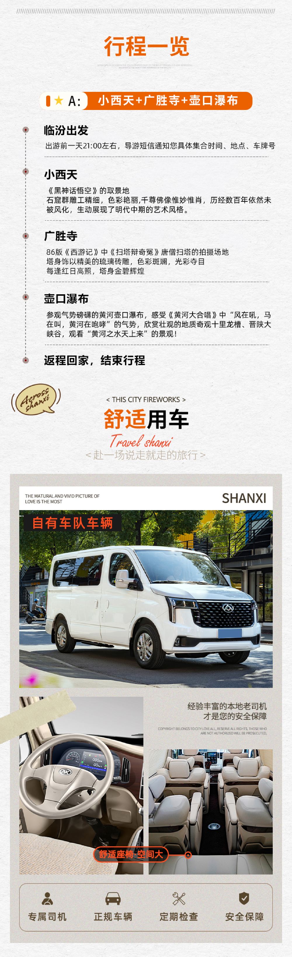 注意:小西天景区60周岁以上免门票,广胜寺65周岁以上免门票。