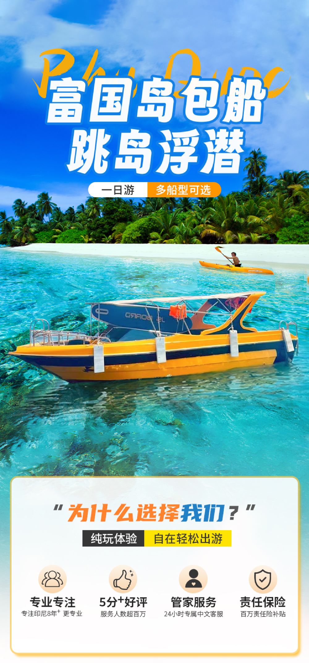 富国岛南岛包船出海一日游【可选快艇&木船|咨询下单有优惠】【出海跳岛游可选木船&快艇 满足多种需求(套餐标题区分快艇或木船,注意甄别哦!)】