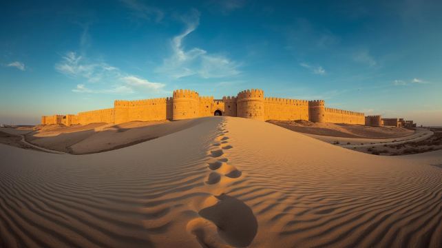 ▲ 在历史悠久的古堡中,欣赏令人叹为观止的日落美景。金色的夕阳映照着古老的石墙和沙漠,更添一份静谧之美。随着太阳西沉,气氛变得宁静而梦幻,为您提供了一段放松身心、静享美景的时光。对于热爱摄影、文化古迹和喜欢静思冥想的游客来说,这无疑是一次理想的体验。温暖的夕阳色调营造出令人难忘的氛围,完美展现了卡塔尔的文化遗产和自然风光。日落时分的游览将为您带来独特的视角,也为您的文化观光之旅画上圆满的句号。