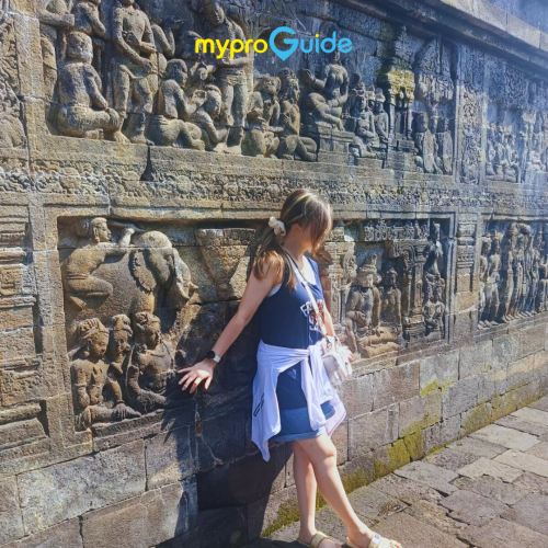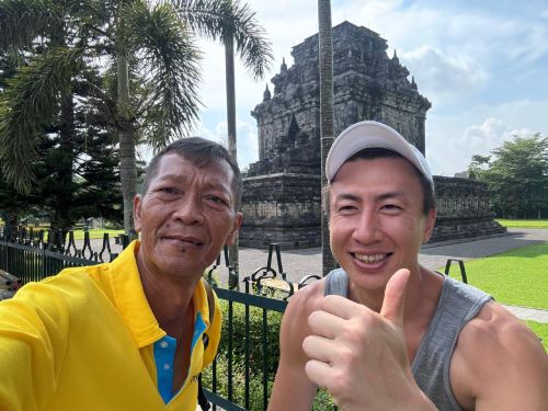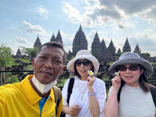 ▲ 一位游客在巍峨的普兰巴南寺庙群前摆姿势拍照,雄伟的湿婆神庙在背景中巍然耸立。温暖的阳光凸显了古老石雕的纹理,宽敞的庭院营造出开阔而富有戏剧性的氛围。游客脸上洋溢着喜悦,展现了探索印尼**代表性的印度教遗址之一的兴奋之情。