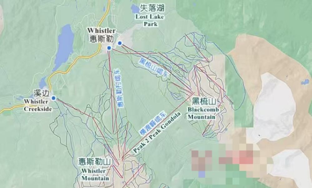 ▲ 惠斯勒山滑雪 适合初学者,滑雪爱好者 地形公园有初级区 黑梳山滑雪 单板滑雪者,以及滑雪爱好者/中级水平以上者 地形公园适合中高级别
