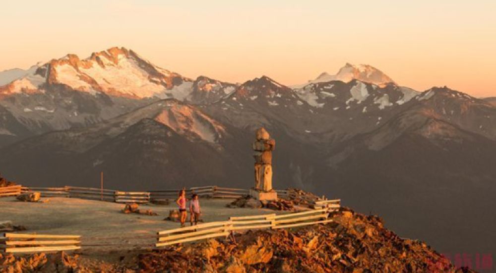 ▲ 世界之巅山峰 在横渡峰缆车站旁有一个吊椅站 乘吊椅可到惠斯勒山的一个更高的山峰 这里你仿佛站在世界之巅,可俯瞰四周的海岸山峰