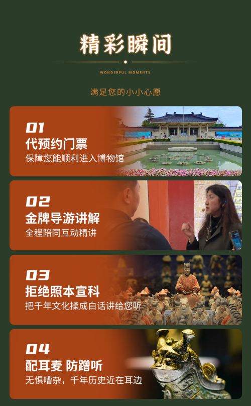 陕西历史博物馆门票为代预约方式,抢到票的概率为90%,万一没有抢到,会提前5天通知,可以变更西安博物院等其他行程,并全额退款,敬请知悉~
