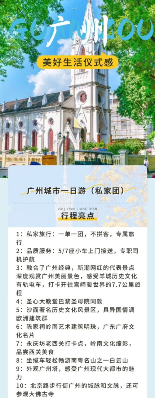 ▲ 广州塔/有轨电车/陈家祠/沙面/永庆坊/白云山/石室圣心大教堂/北京路步行街