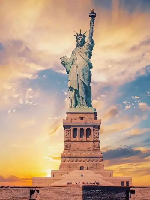 - 自由女神像:法国赠送给美国的礼物,位于自由岛,是美国的象征,右手举火炬,左手持《独立宣言》,脚下有断裂锁链,象征自由与民主。