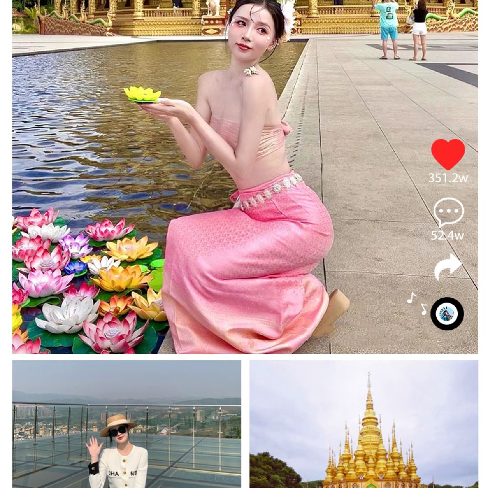 【山顶公园】可以参与一洗二摸三揽四比活动,金盆洗手拍照很有意思,仿佛去到了东南亚一样,玻璃栈道上可俯视整个景洪城,童话里的天空白云,拍照超美