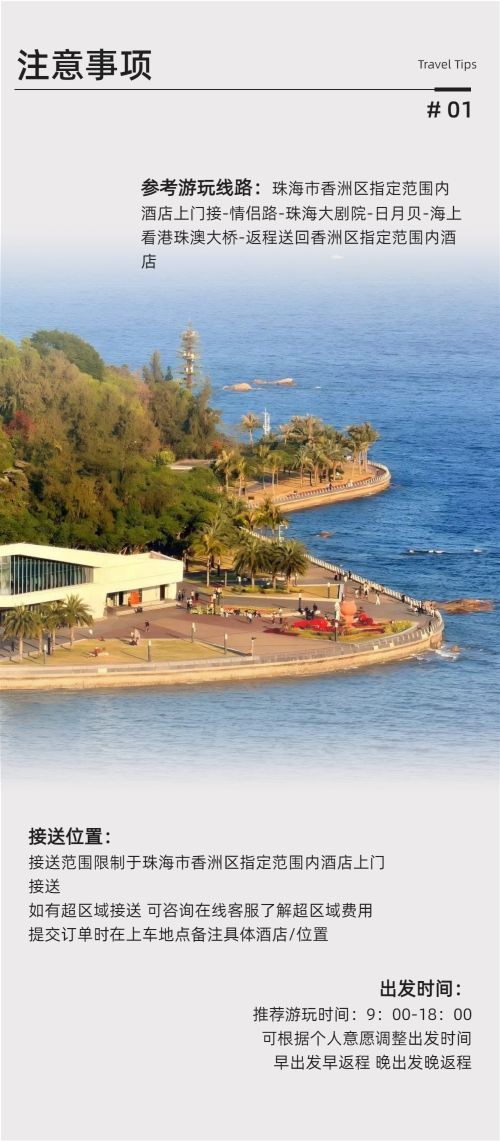 珠海包车9小时一日游|打卡情侣路+日月贝+海上看港珠澳大桥【专车无缝衔接,一日尽览情侣路浪漫、日月贝优雅与大桥雄伟】