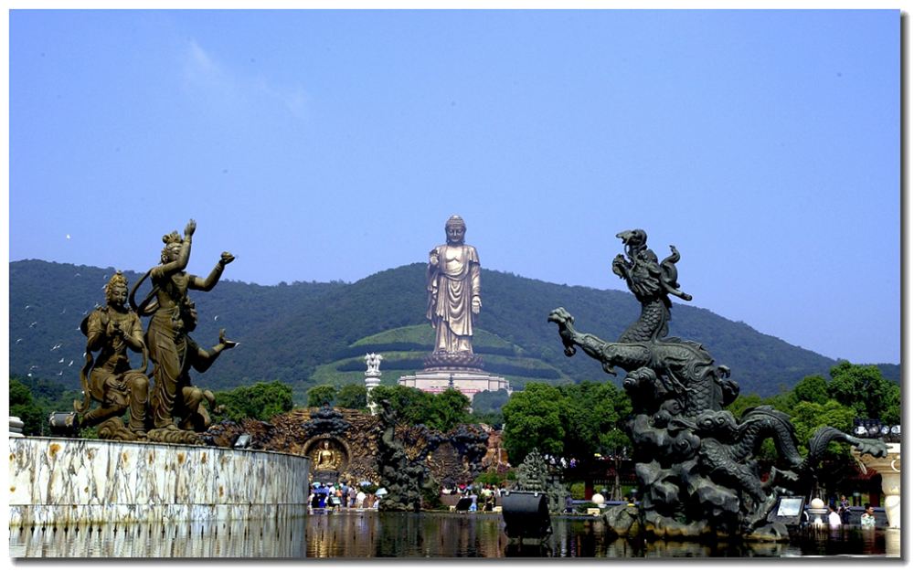 ▲ 【灵山胜境】 以深厚的佛教文化底蕴和精美震撼的佛教文化景观成为展示中华优秀传统文化的重要窗口之一 #灵山大佛庄严矗立# 通高88米,为露天青铜旃檀佛像庄严圆满、安详慈悲 九龙灌浴花开见佛 大型音乐动态群雕演出,再现了佛典中太子诞生的祥瑞和绚丽景象 灵山梵宫华藏辉映 灵山梵宫为世界佛教论坛永久会址,是璀璨震撼的艺术殿堂,清净庄严的心灵归所也被称誉“东方的卢浮宫”