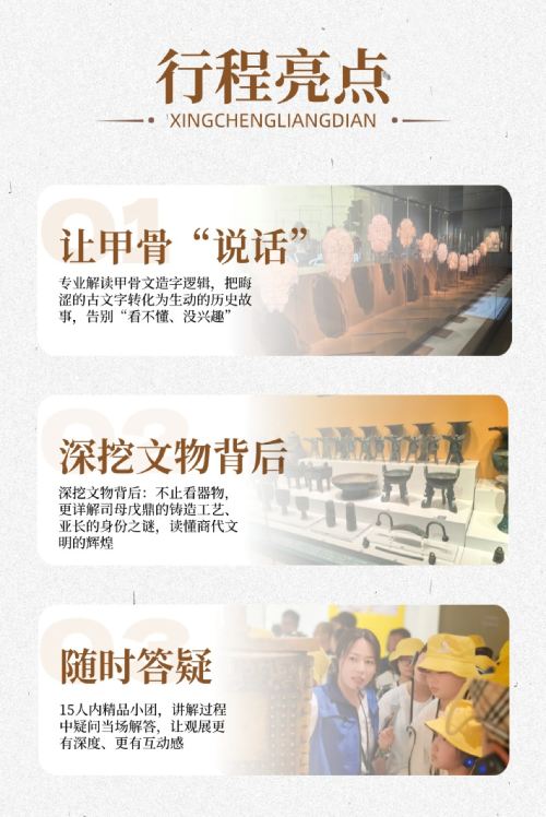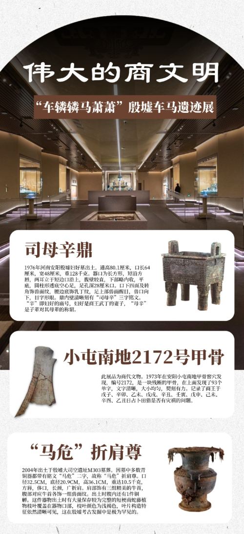 【讲解内容】1F车马展厅+2F伟大的商文明两个展厅+3F展厅(甲骨文+亚长展厅)