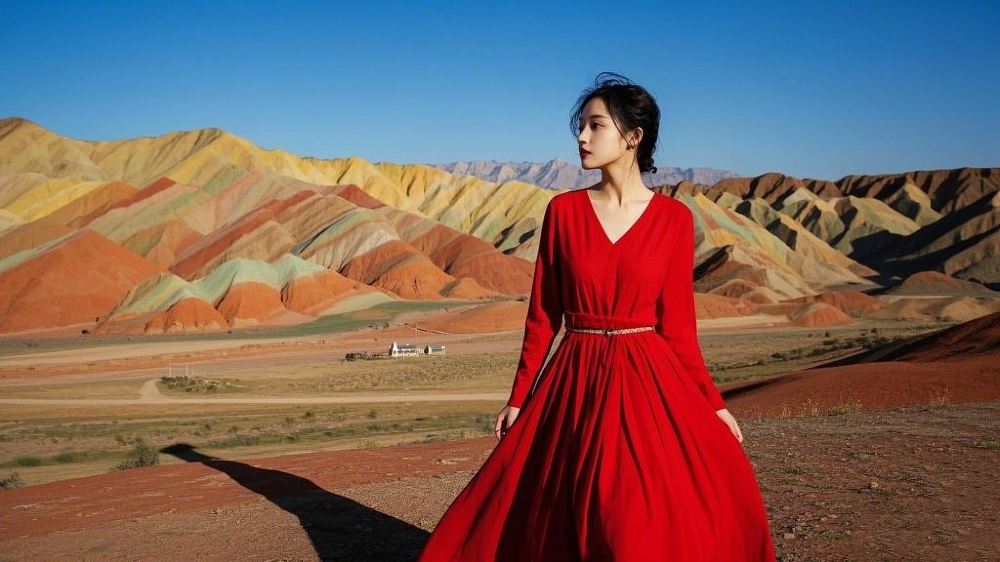 ▲ 仿佛一幅巨型水墨丹青画,色彩斑斓的彩色丘陵与嶙峋山峦交织,呈现出中国画般的诗意意境。