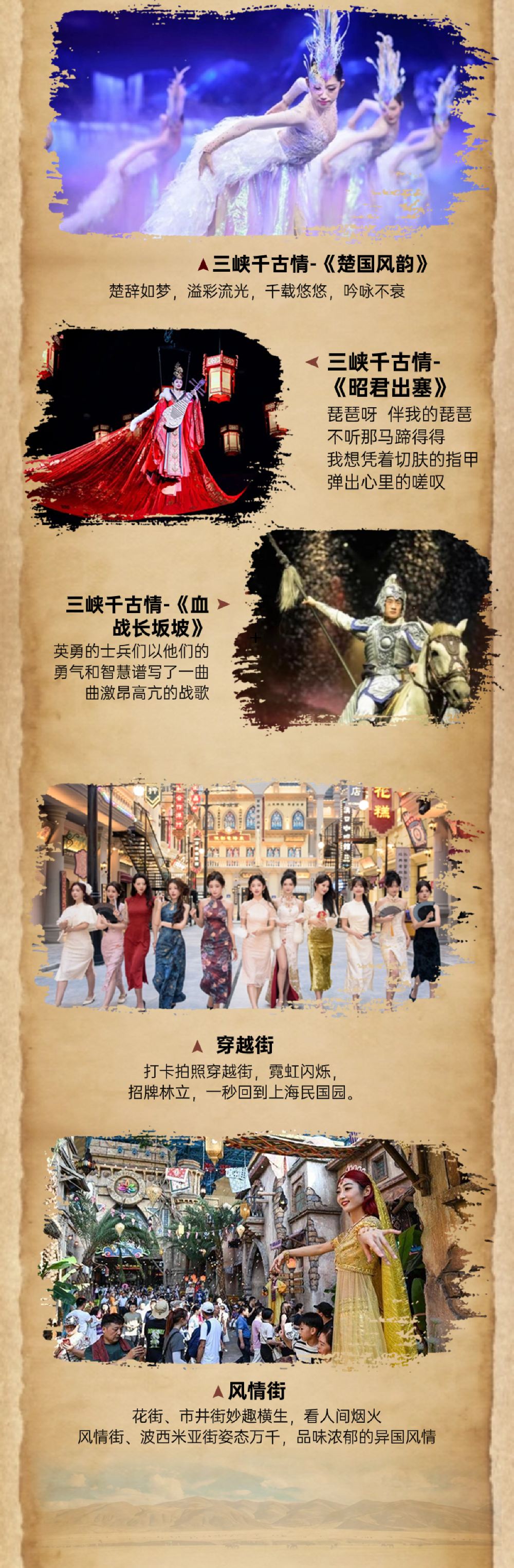 4.景区项目与演出会因天气、现场等实际情况进行调整或取消,具体以景区现场公告为准。如遇自然灾害或恶劣天气以及其它不可控因素可能影响安全,园内部分项目可能关闭。景区将不予退票或补偿,不便之处敬请谅解。