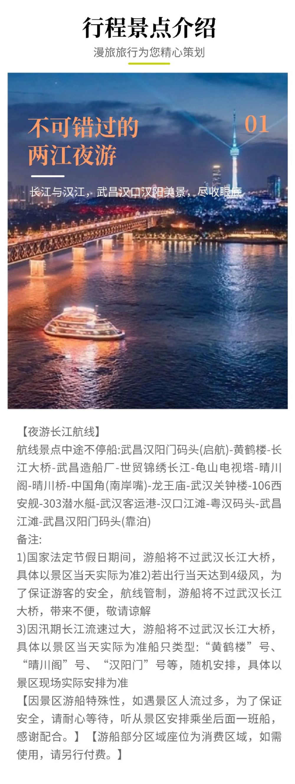 夜游船票仅提供游船项目,灯光秀为免费开放,具体以当天实际开放情况为准。