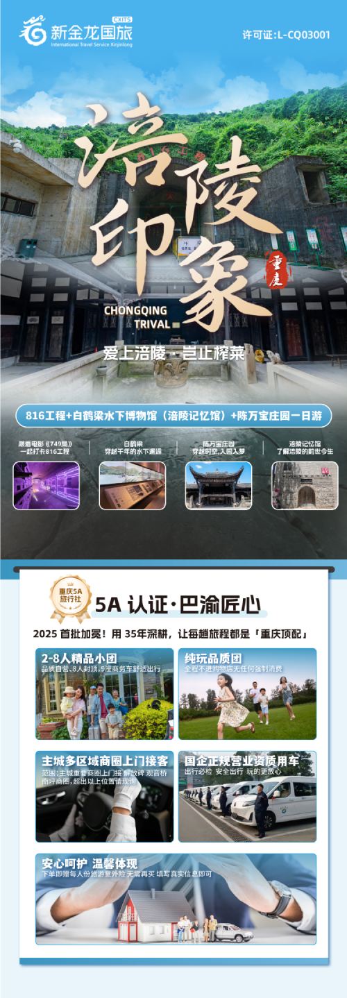重庆816工程+白鹤梁+陈万宝一日游【2-8人团】赠榨菜咖啡【[稀缺性资源组合]集合文化遗产+工业奇观,双重IP,市场罕见】