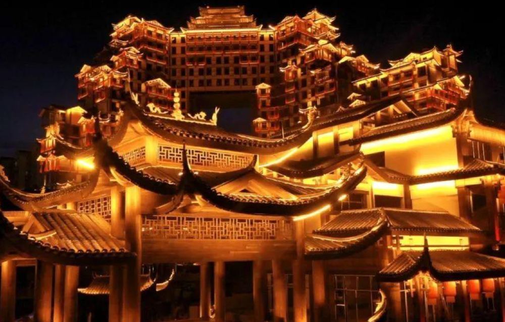 登山之旅结束后下山返回市区。夜幕降临时,前往永定区开启一场张家界七十二奇楼夜游。这座建筑享有世界*高吊脚楼式建筑的称号,其精妙的"双洞互视"设计独具匠心。置身其中可深度体验湘西文化,而璀璨的夜间灯光秀更将氛围推向高潮——堪称**的网红打卡地标。