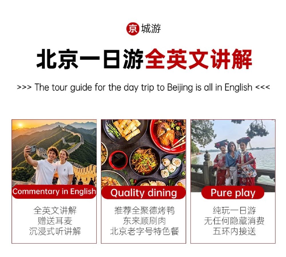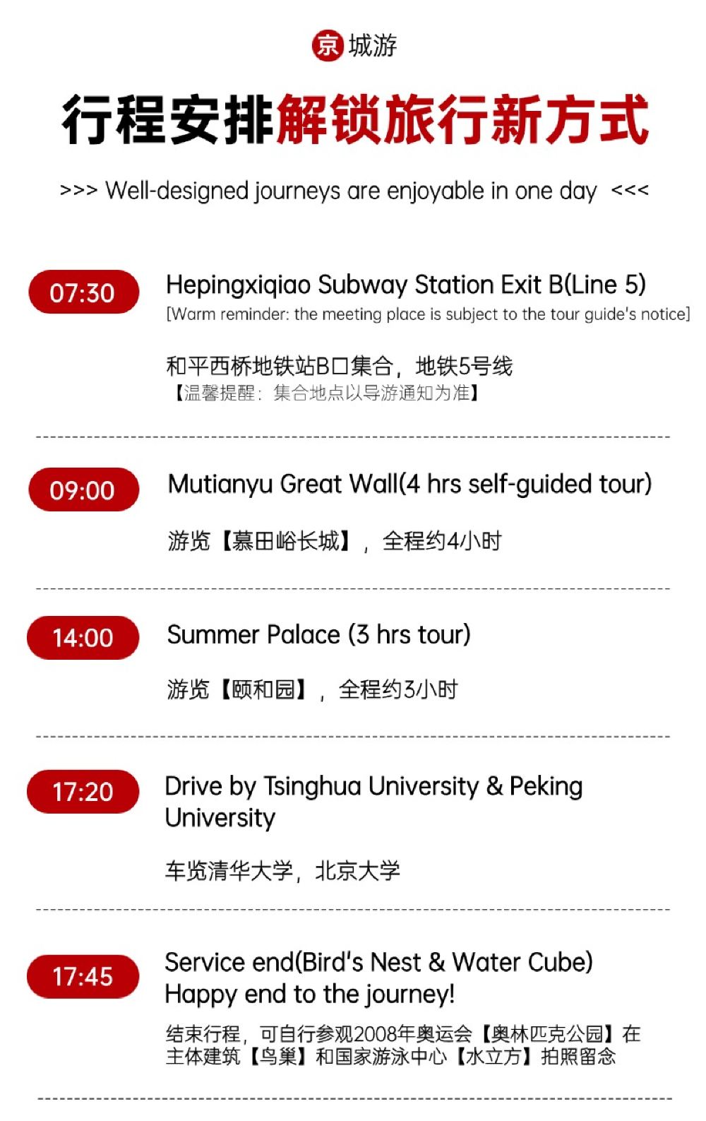 【英语团】慕田峪长城+颐和园含票+往返大巴+全英文讲解【[英文专属]专业英文导游精讲双遗产,外籍游客轻松吃透文化内涵】