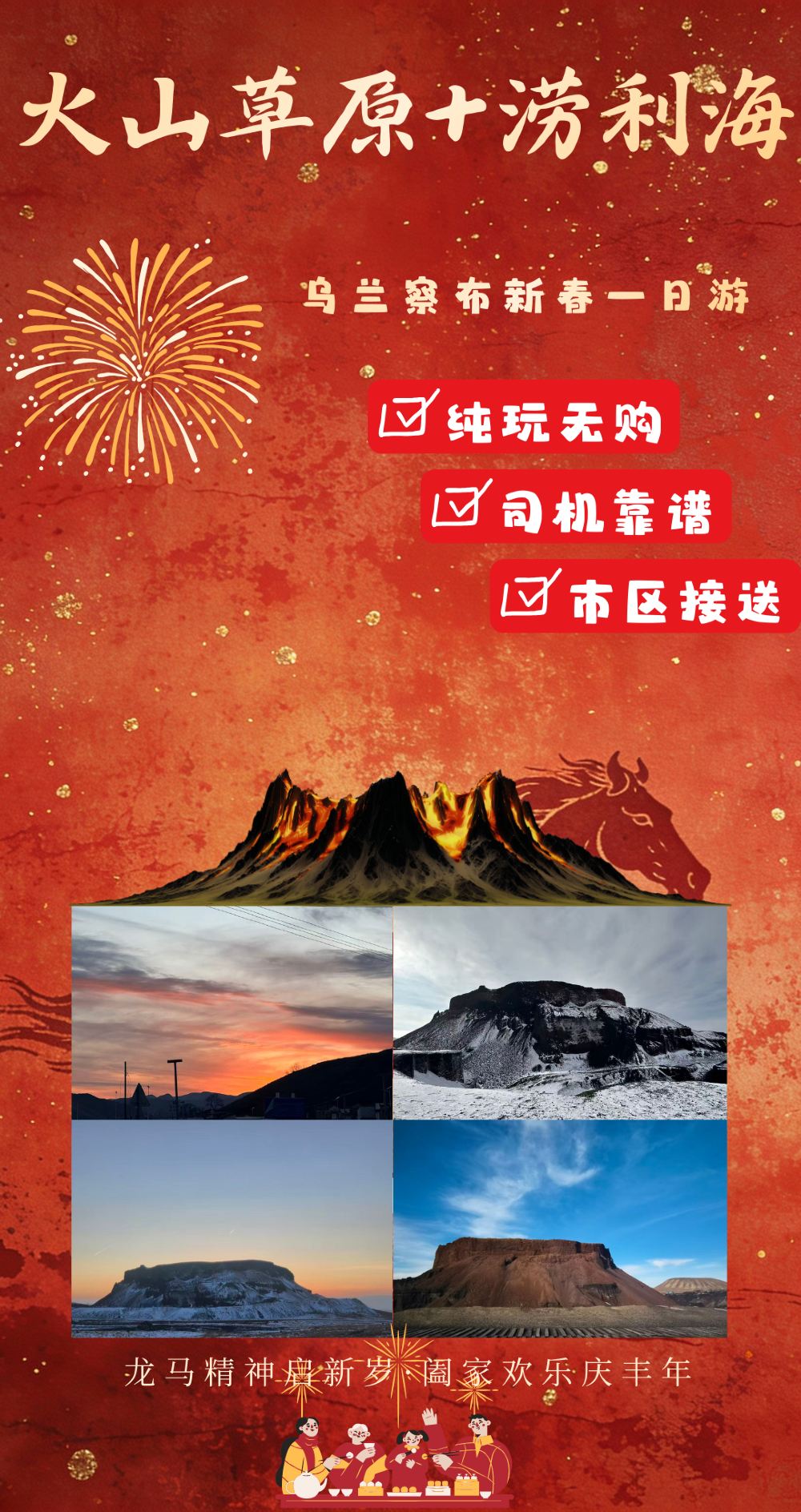 辉腾锡勒草原+乌兰哈达火山+涝利海一日游 | 乌兰察布出发【[我们承诺]真纯玩无购物,本地旅行社,乌兰察布市区免费上门接!】