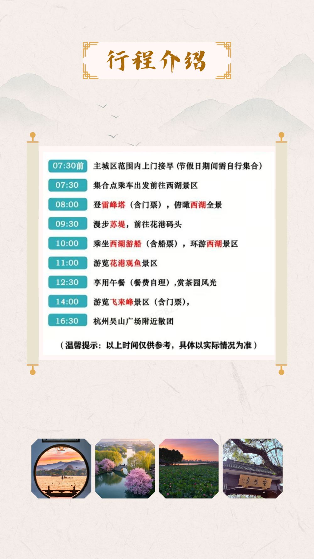 西湖风景名胜区+雷峰塔+游船+灵隐飞来峰拼团一日游【【保证游玩】没有强制消费,没有隐形消费。】