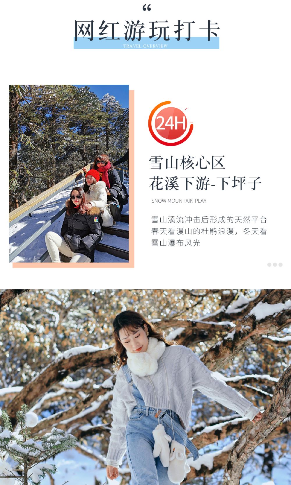 (2)步行或乘下坪子索道,抵达大黑箐(海拔3850M),沿花溪拾级而上,赏姊妹瀑布,回望小江峡谷,经月亮岩鸟瞰雪松林及冷杉