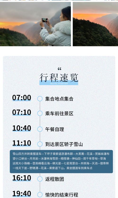游览轿子雪山景区(此游览线路仅供参考,请根据游客自己的体力量力而行):