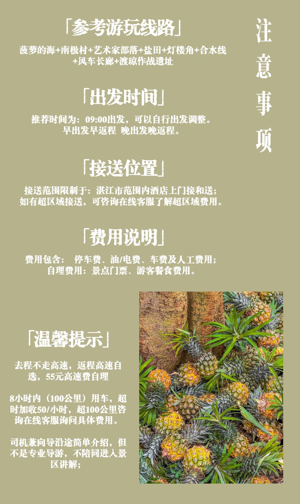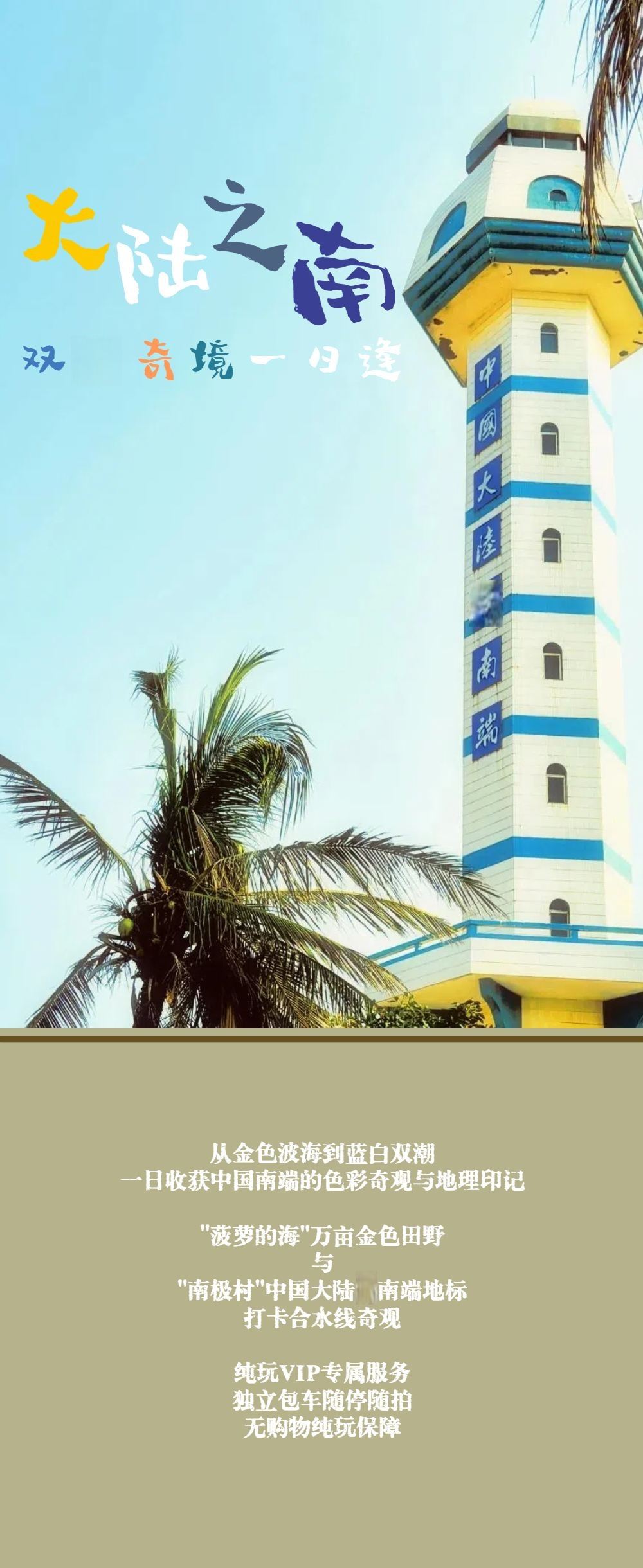 湛江徐闻包车10小时一天游/快速打卡菠萝的海+南极村+合水线【菠萝的海映南极,一路向南醉徐闻。路线定制可咨询客服】