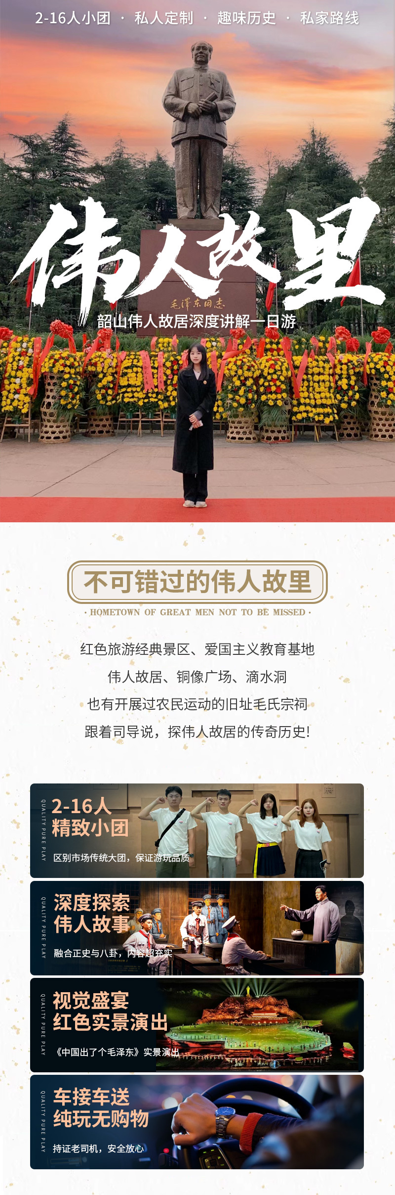 毛泽东同志故居+毛泽东广场+滴水洞+刘少奇故居一日游【全程纯玩0购物|可选16人团|赠韶山环保车|赠主席像章】
