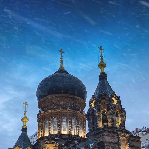 ▲ 漫步哈尔滨中央大街,转角遇见一座‘洋葱头’穹顶的童话城堡——索菲亚教堂️。这座始建于1907年的拜占庭风格建筑,曾是沙俄军队的随军教堂,见证了中东铁路的修建与中俄文化的交融。历经百年风雨,它从宗教场所蜕变为城市地标,如今以哈尔滨市博物馆·索菲亚教堂展馆的身份,向世人诉说着哈尔滨的‘东方莫斯科’往事。”