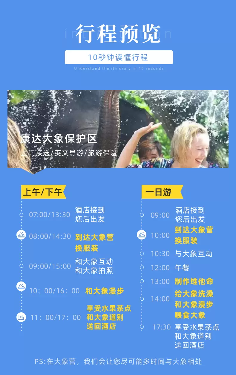 清迈康达大象保护营一日游【kanta|帮大象洗澡+泥巴浴+喂食大象+接送+英文向导】