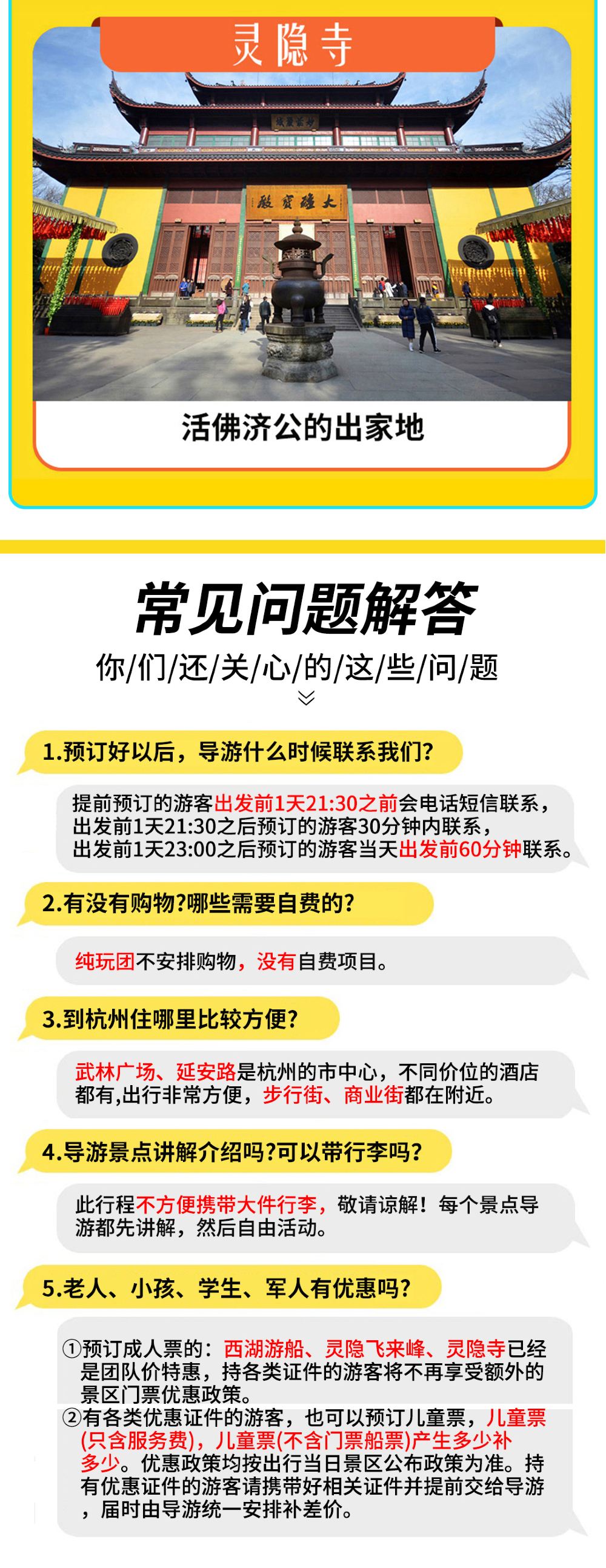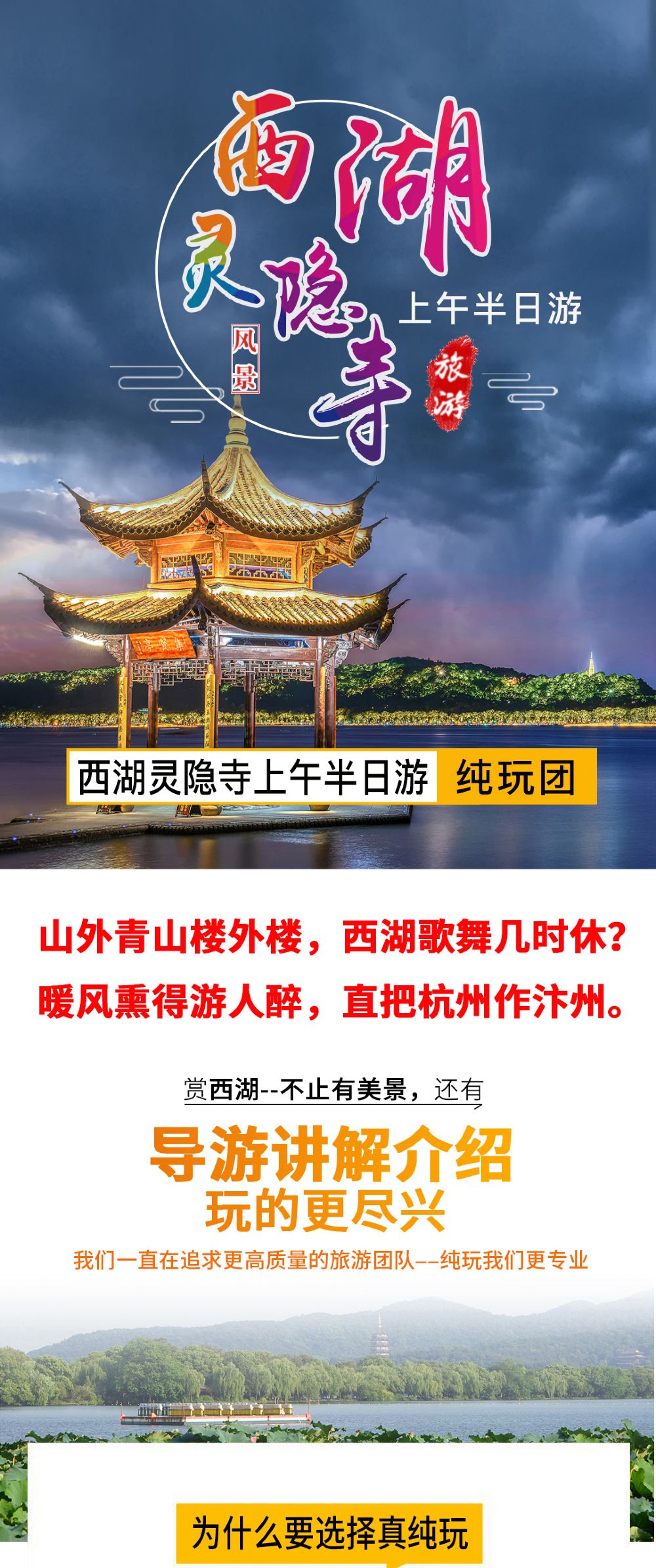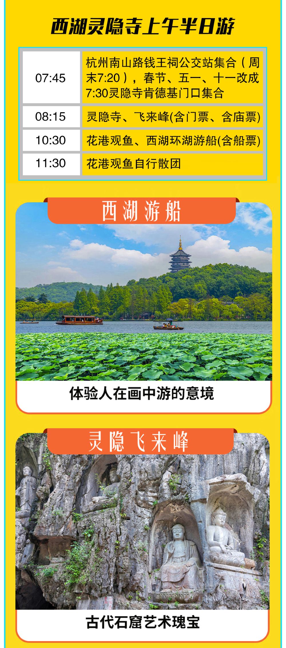 上午半日游:杭州西湖+西湖游船+灵隐寺+导游讲解·真纯玩【[保证纯玩]没有购物安排,没有强制消费,没有隐形消费。】