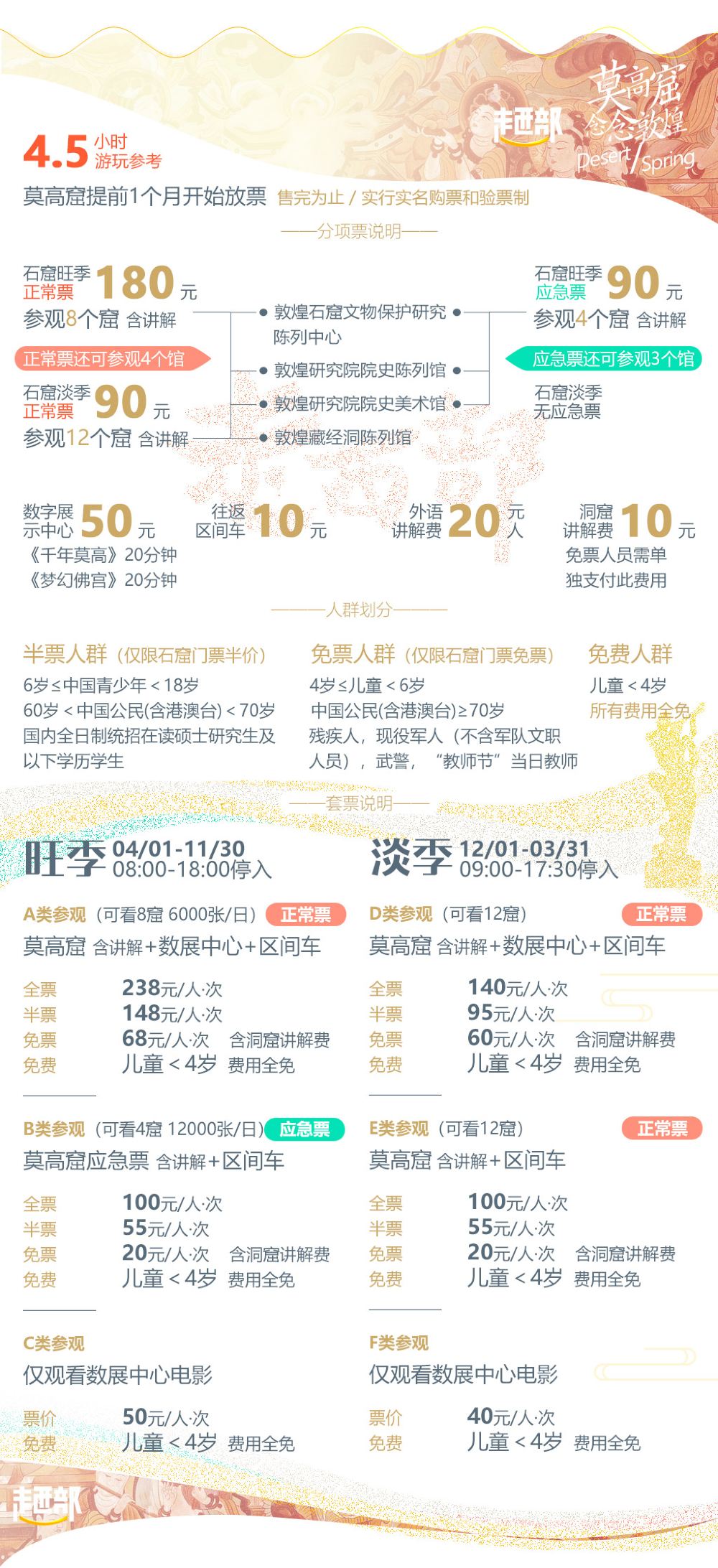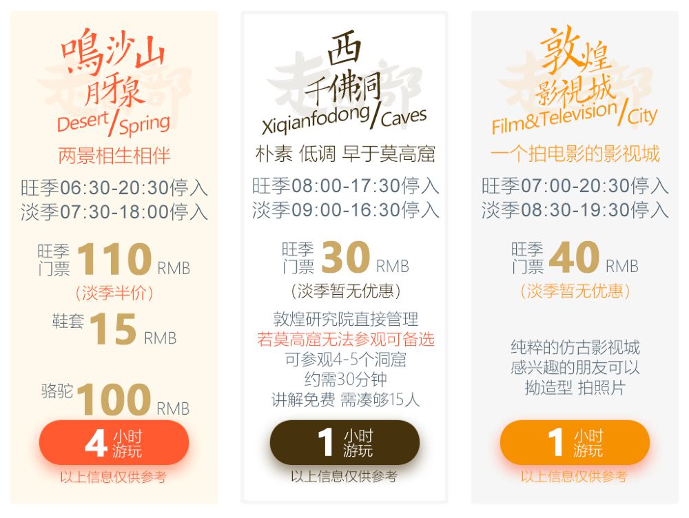 1、本套餐不含门票,请提前自行预约莫高窟