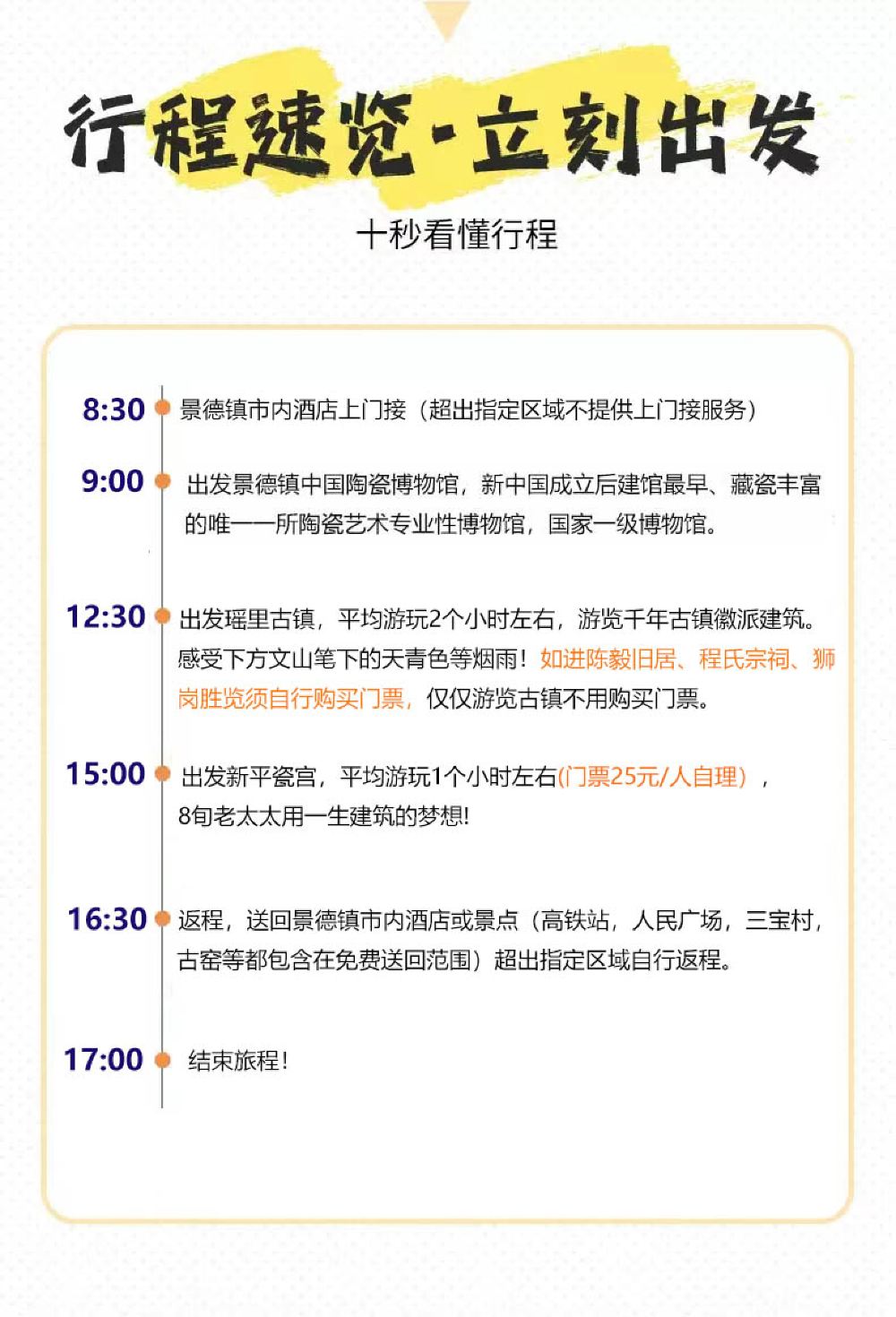 4、瑶里+东埠+寒溪+瓷宫包车线路,每份订单为一辆车的价格。沿途可停靠:丙丁、瓷宫、寒溪、东埠、瑶里古镇、浮梁五品古县衙 ,如去汪湖加车费50元/辆。瑶里套票110元,提前一天预订算85元一张。