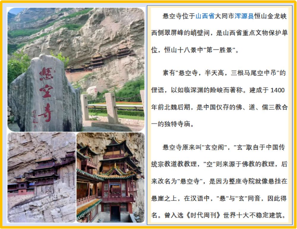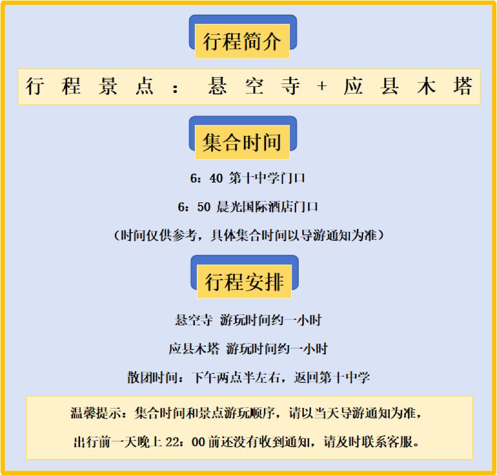 中国山西大同悬空寺一日游【大同悬空寺+应县木塔纯玩一日游】【纯玩无购物,放心一日游】