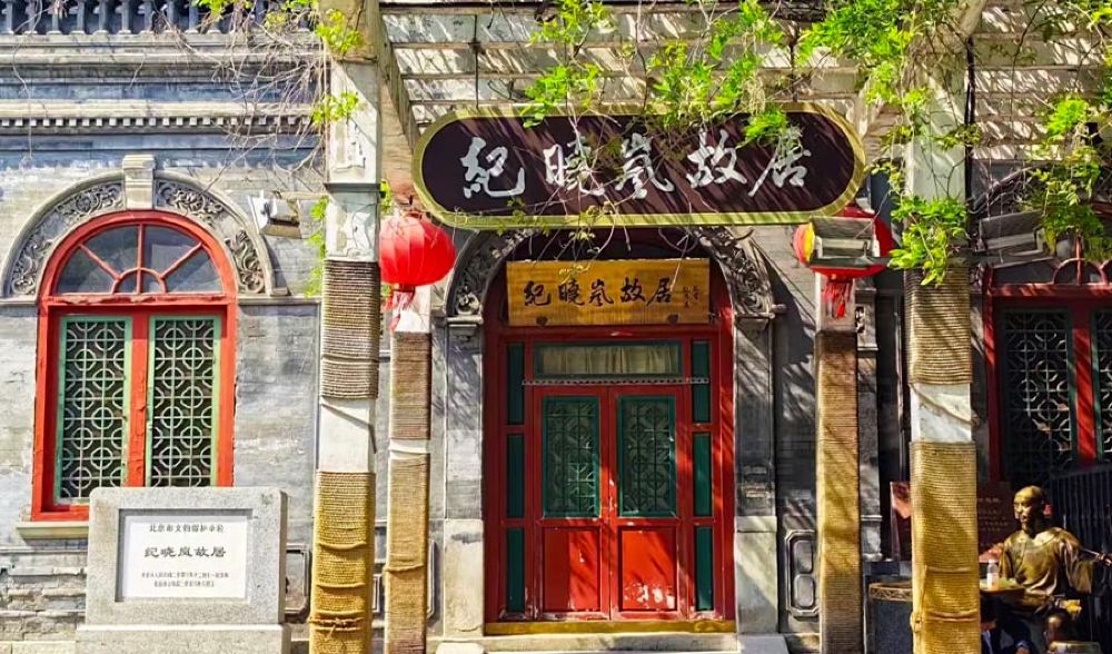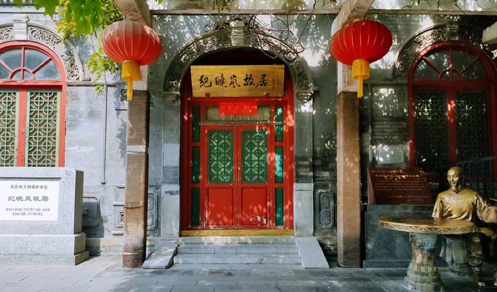 ▲ 纪晓岚故居:位于珠市口西大街241号,占地570平方米,清式砖木结构,基本上属于两进四合院的建筑格局。坐北朝南,临街大门为硬山顶吉祥如意式门楼,位于整个住宅的东南角。与大门洞相连接的西侧南房为四间开门"倒座",是宣武区重点保护文物,免费对公众开放。故居内设有展室,陈列当年纪晓岚曾用过的器物、诗文墨迹和阅微草堂中纪晓岚的旧物等,并对纪晓岚当年主持编纂的《四库全书》和晚年所作的《阅微草堂笔记》有详细介绍。