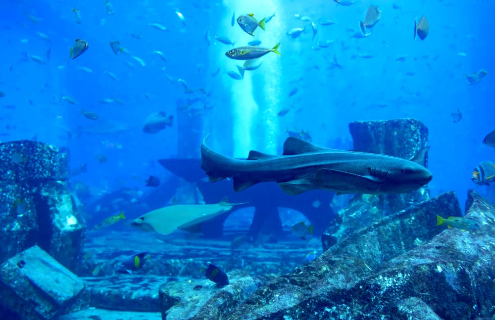 ▲ 48 米长的 270 度海底隧道内,300 多条鲨鱼和鳐鱼在头顶游弋,巨型虎头鲨的身影掠过,游客仿佛漫步深海,感受被海洋环绕的震撼。